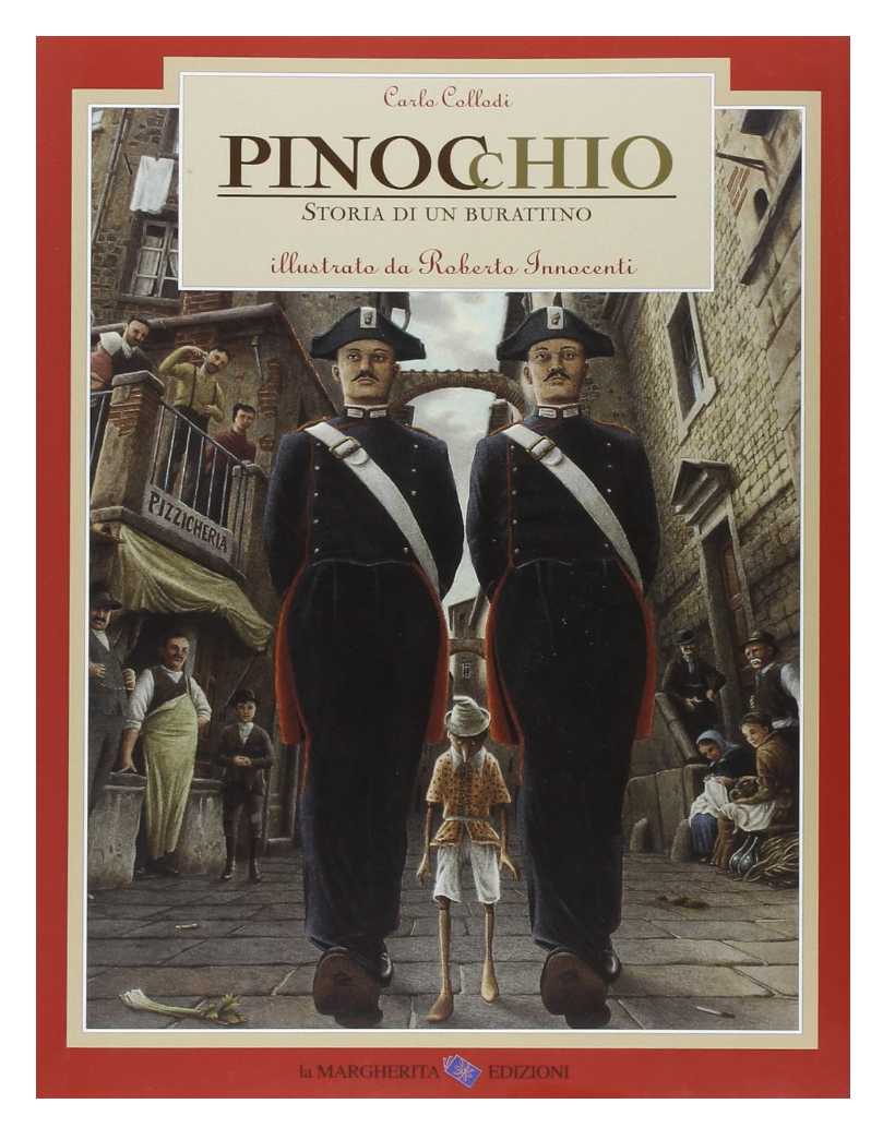 In 2024, Innocenti was honoured with a retrospective, Illustrare il tempo, at Palazzo Medici Riccardi in Florence. His Pinocchio, first published in Switzerland in 1988 and later in Italy by La Margherita, is hyper-realistic and densely detailed, with vertiginous perspectives and meticulous attention to every element, creating an almost cinematic narrative.