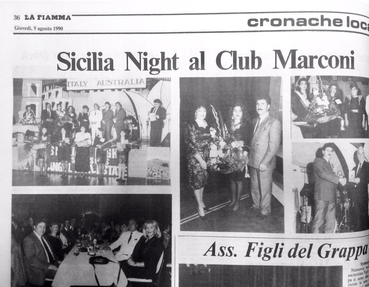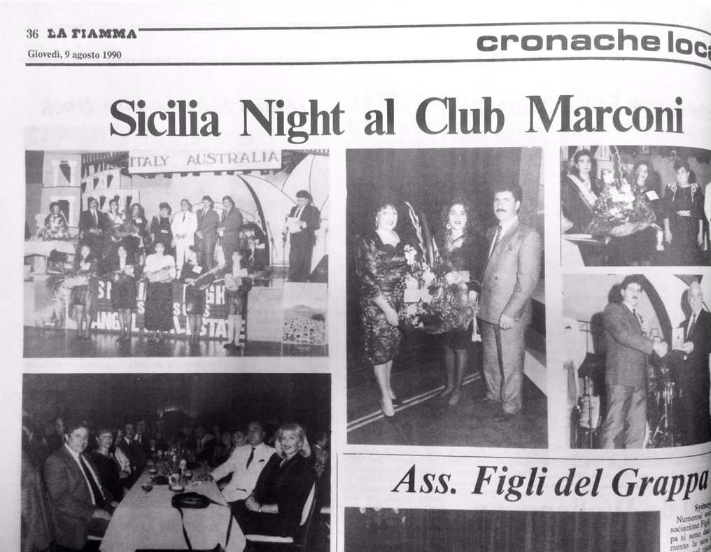 Club Marconi president, Tony Labbozetta, welcomed those present, in particular the guests of honour, who included: the Curraos, owners of Angel Real Estate; the Furiglos; Alfredo Migliucci from Alitalia; Angela Biviano, who won Miss Sicilia 1989; D. Labbozzetta, owner of Club Marconi; and the members of the managing committee and women’s committee at Club Marconi.