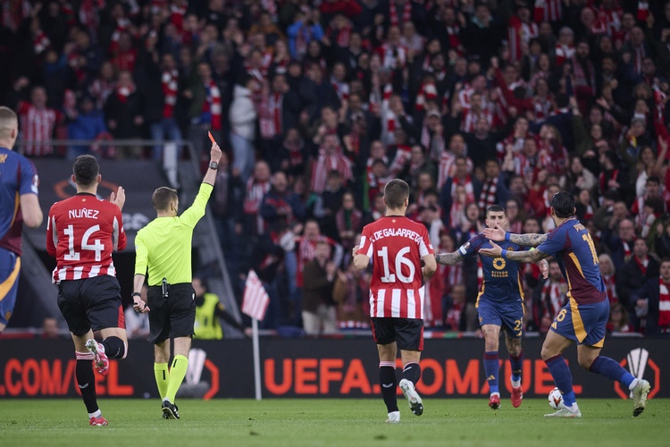 The giallorossi almost went back into the changerooms level at the break, but Nico Williams put the Spanish side ahead in the third minute of first-half added time with a shot at the back post that took a deflection off Evan Ndicka.