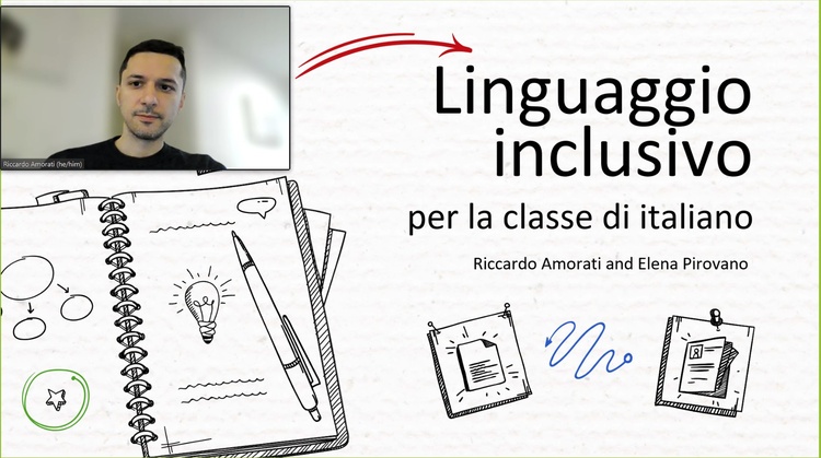 The webinar presented teachers with practical examples of inclusive language to be used in the classroom, but, as Amorati pointed out, “not because everyone has to use these formulas, but to highlight that there are language choices possible for students who want to draw on those forms”.