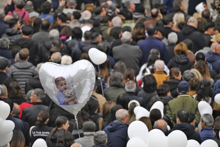 The boy’s small coffin was laid out in the cathedral of his hometown of Nola near Naples ahead of the funeral.
