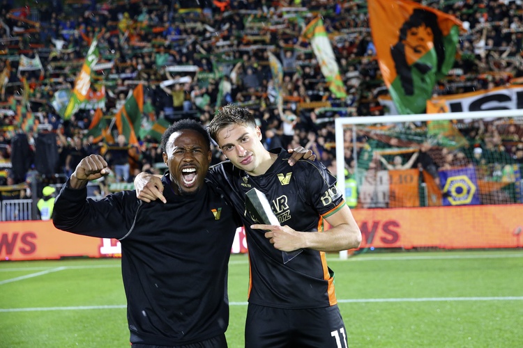 Venezia starting XI (3-5-2): Radu, Schingtienne, Idzes, Candé, Zerbin (subbed for Zampano), Perez (subbed for Doumbia), Nicolussi Caviglia, Busio, Ellertsson, Oristanio (subbed for Conde who was subbed for Haps), Yeboah (subbed for Maric)