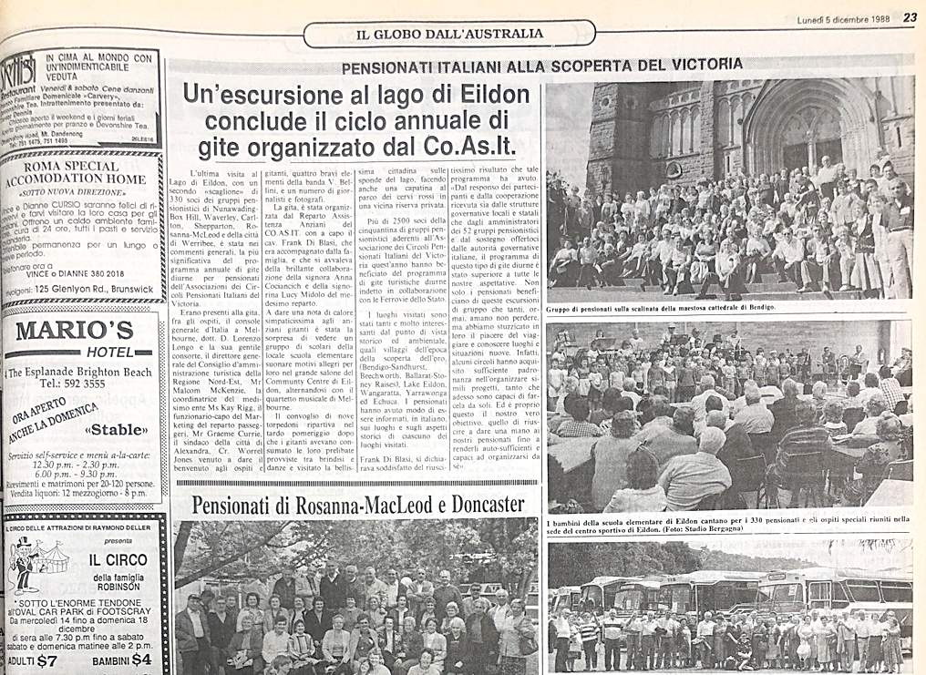 More than 2500 members from around 50 pensioner groups belonging to the Associazione dei Circoli Pensionati Italiani del Victoria have taken part in the day trips program.