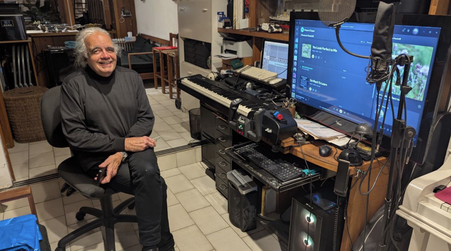 For many years, Vincenzo didn’t play music, but his passion never faded. He eventually began playing again with Elaine and recently started composing his own music, now available on Spotify.