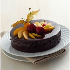 7. Melt the dark chocolate in a double boiler and completely cover the cake with the melted chocolate. Decorate as desired and refrigerate until ready to serve.