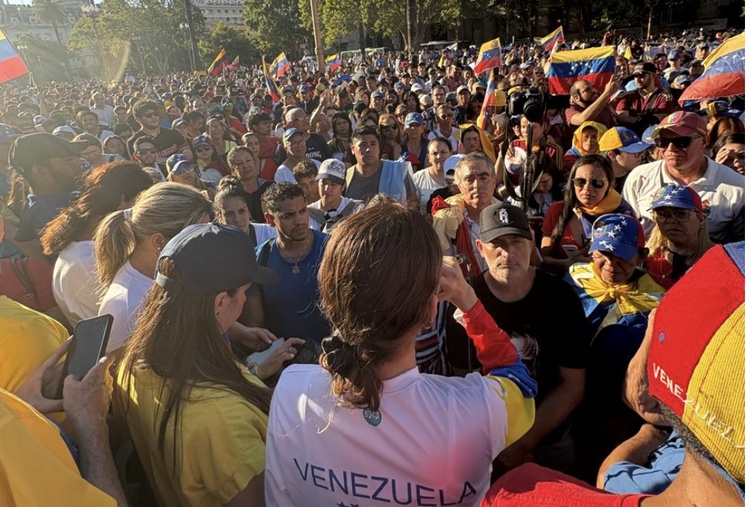 La portavoz concluyó su intervención con una invitación decidida: “A todos los venezolanos y argentinos que quieran unirse a nuestra causa, los esperamos nuevamente mañana en Plaza de Mayo”. Hoy es el día previsto para la asunción de Nicolás Maduro, en una Caracas blindada, donde se ha cerrado el espacio aéreo y la autopista de ingreso a la ciudad.