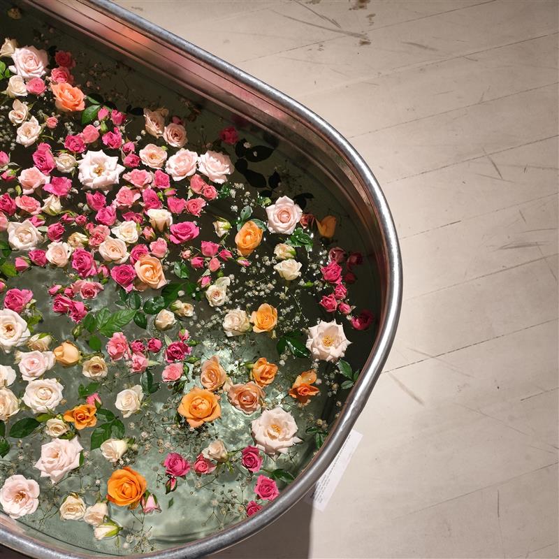 Paola Calcerano, sin título de la serie Intimidad (instalación site-specific realizada con rosas).