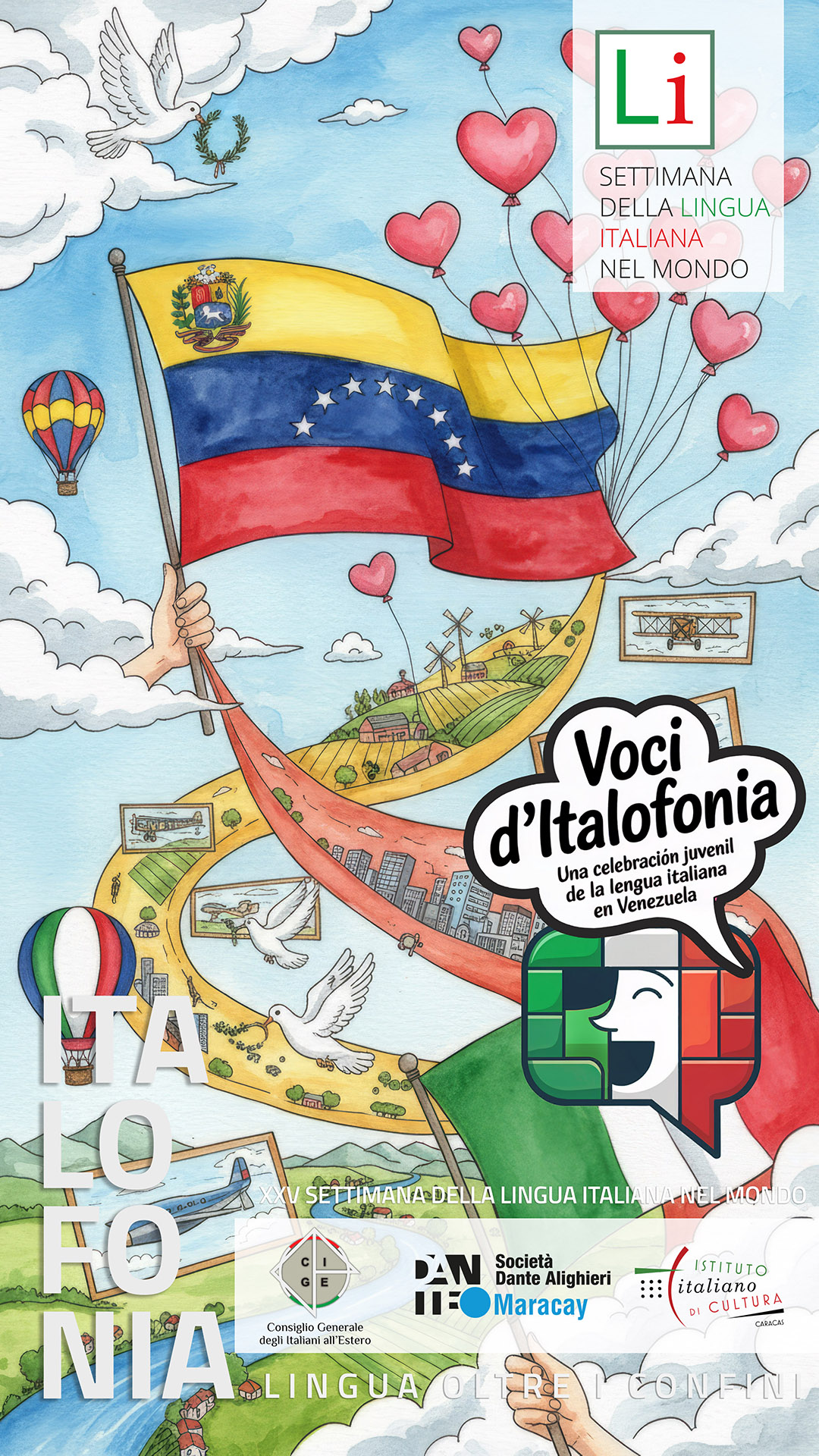 CARACAS – Se llama Voces de la Italofonía, es un proyecto pensado para los jóvenes y representa el aporte a la Semana de la Lengua Italiana en el Mundo del Consejo General de los Italianos en el Exterior (Cgie), de la Sociedad Dante Alighieri de Venezuela y del Instituto Italiano de Cultura de Caracas, en colaboración con el Comites de la capital venezolana.