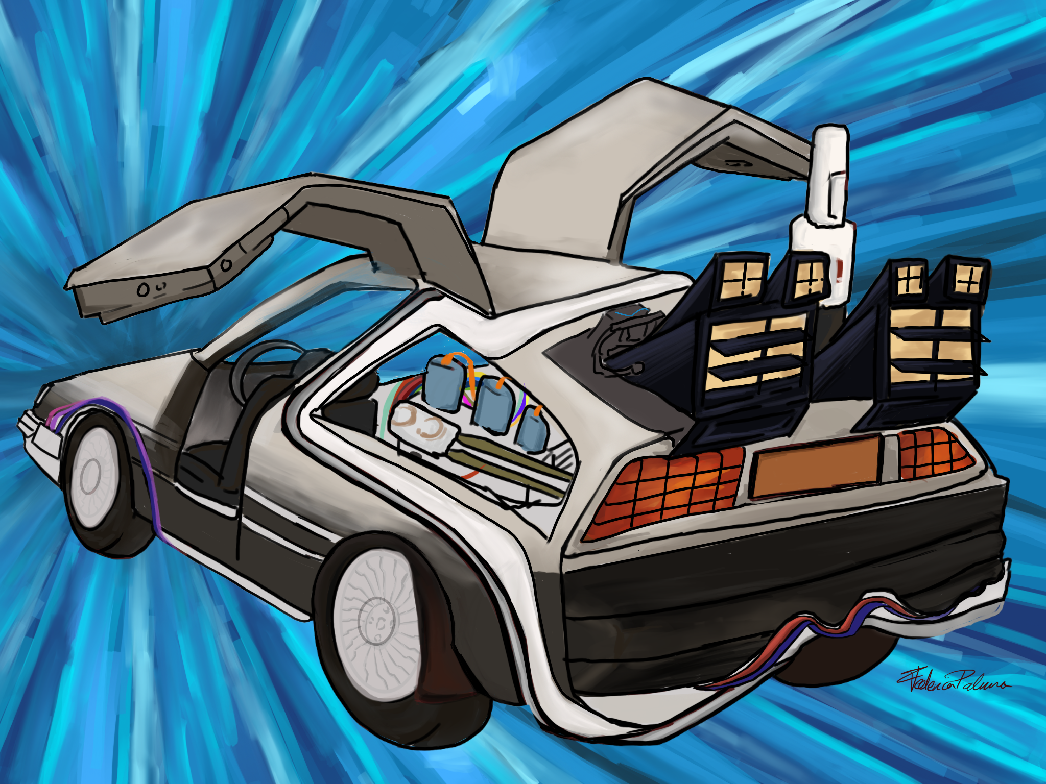 L'illustrazione della DeLorean realizzata da Federica Palma