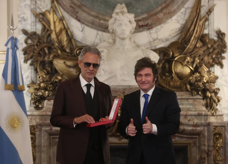 BUENOS AIRES - Nel bel mezzo del suo tour mondiale, per il cantante Andrea Bocelli è arrivato un riconoscimento istituzionale dal governo argentino. Il 19 novembre, il presidente Javier Milei ha decorato l’artista con la medaglia dell’Orden de Mayo al Mérito, con il grado di commendatore, una della distinzioni più alte dell’Argentina, come riconoscimento a meriti e contributi in campo civico, sociale o artistico.