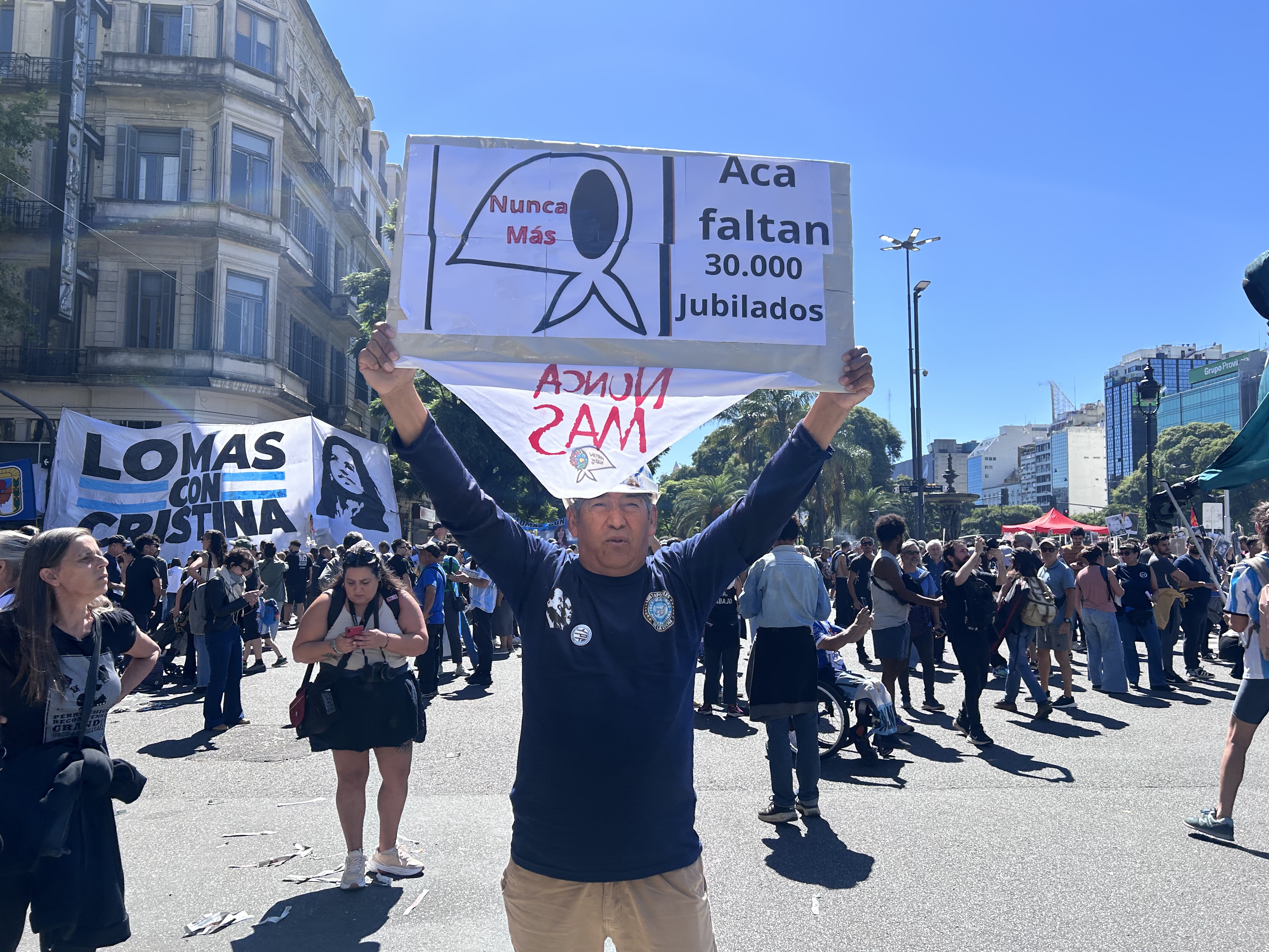 In Avenida de Mayo sfilano sindacati, associazioni di studenti, gruppo di familiari di vittime della dittatura, formazioni popolari come Barrios de pié (quartieri “in piedi” nel senso di mobilitati).