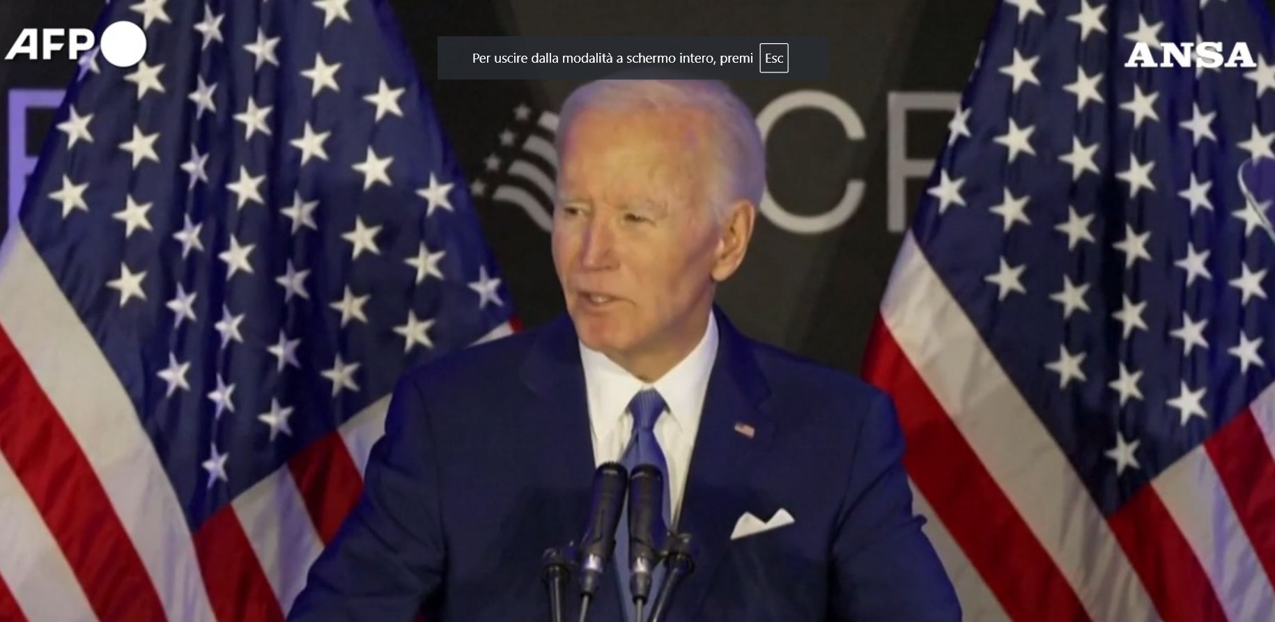 Abito blu e cravatta, l’ex presidente ha parlato per 30 minuti a Chicago in occasione di un evento sui diritti dei disabili. In piedi davanti alle bandiere americane ha mostrato - a tratti - i segni dell’età che lo avevano spinto ad abbandonare la corsa alla presidenza, come qualche incertezza nella lettura del gobbo.