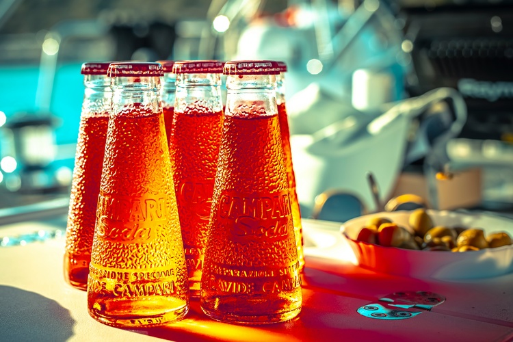 La piccola bottiglia di Campari, conosciuta popolarmente come Campari Soda, è un ottimo esempio di combinazione tra tradizione e design moderno. Introdotta nel 1932, è una novità assoluta: il primo aperitivo monodose pronto da bere, un’idea innovativa per l’epoca che si adattava ai cambiamenti dello stile di vita del XX secolo. La bottiglia è il frutto dei talenti molteplici di Fortunato Depero, un artista del movimento futurista italiano. Il Futurismo si concentrava sulla tecnologia moderna, sul progresso e su forme audaci e semplici, e questo design rifletteva queste idee. L’esclusiva forma conica della bottiglia di Campari, simile a un piccolo calice o a un bicchiere, era molto diversa dalle confezioni dettagliate e fantasiose utilizzate dalla maggior parte degli altri marchi degli anni ‘30. Il suo design così semplice e pulito la faceva risaltare sugli scaffali e la rendeva facile da tenere in mano e da usare.