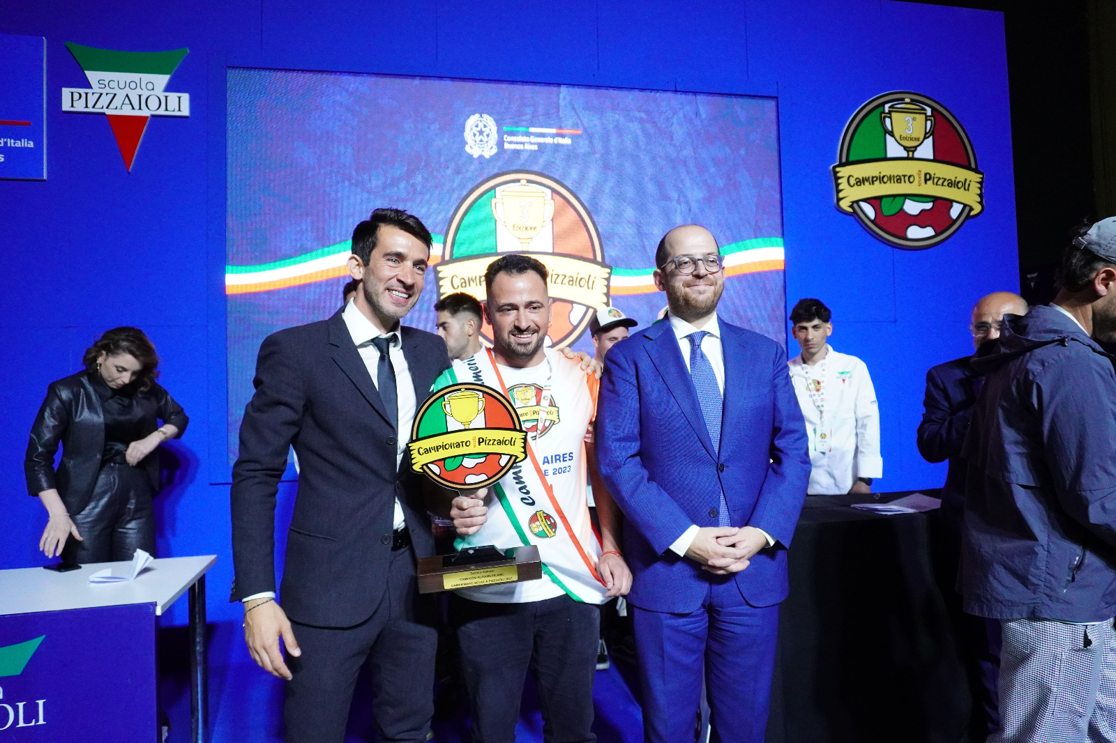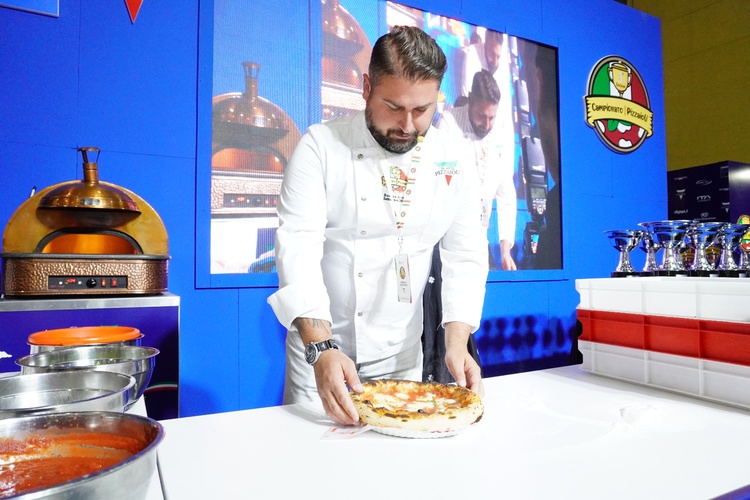 Così, in uno stand attrezzato come una pizzeria italiana, i concorrenti, tutti sudamericani, si sono avvicendati nelle diverse specialità. Per esempio, margherita Stg (“Specialità tipica garantita”, ossia preparata secondo un disciplinare che regola gli standard per la farina, la mozzarella, i tempi di levitazione e cottura…), contemporanea, gourmet, senza glutine, fritta e in teglia (la classica pizza romana al taglio).