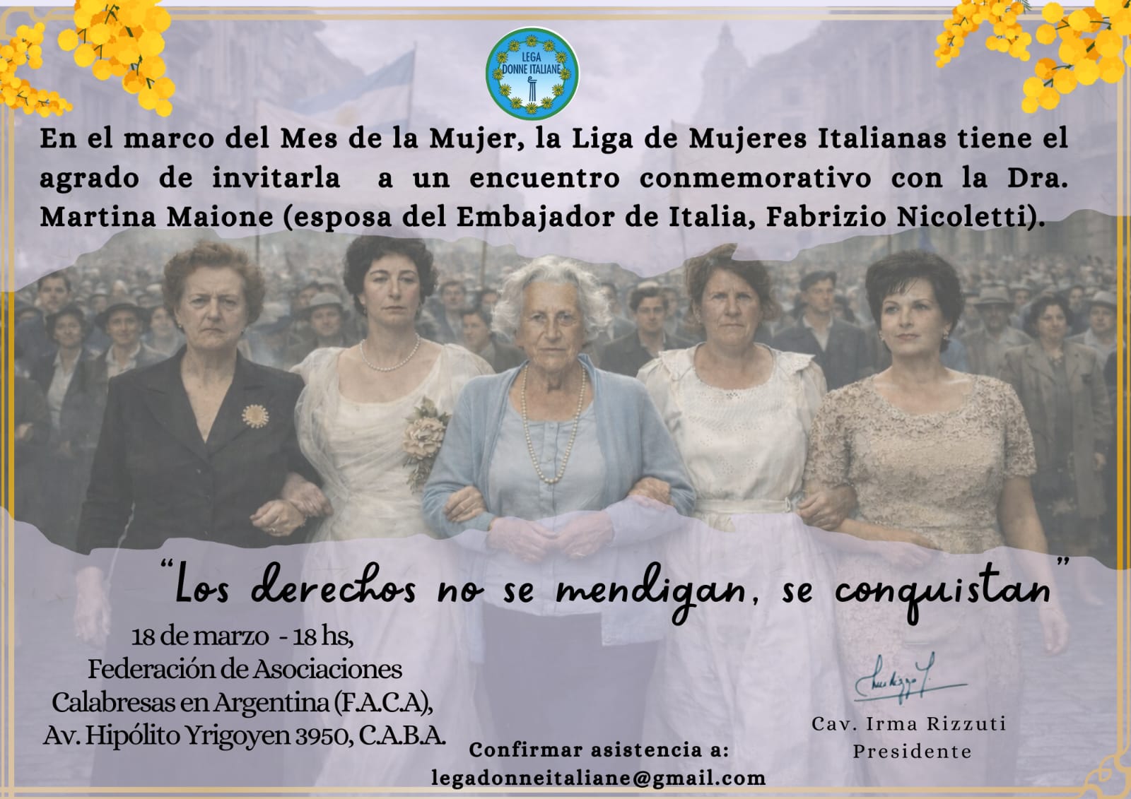 Nella sede della Federazione Calabrese di Buenos Aires, la Lega delle Donne Italiane ha voluto ricordare lo spirito dell’8 marzo con un atto che è stato, allo stesso tempo, omaggio e ricostruzione: una forma di tornare su traiettorie che spiegano anche una parte della storia argentina.