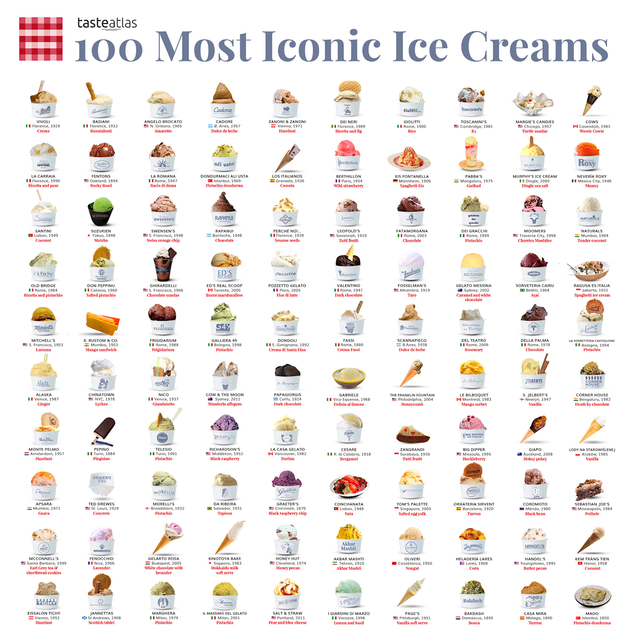 La gelateria – che per esplicita dichiarazione del proprietario è ispirata all'italiana Grom – è la più innovativa dal punto di vista dei gusti: latte di mandorla, Negroni sbagliato, ricotta siciliana, ciliegie alla panna, zucca sciroppata al roquefort.