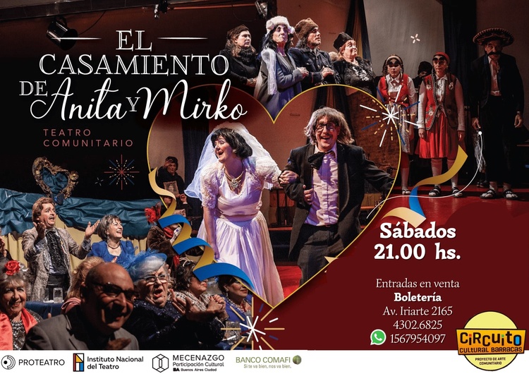 Lo spettacolo così longevo e di successo si intitola El casamiento de Anita y Mirko (“Il matrimonio di Anita e Mirko”) ed è un autentico banchetto nuziale, in un salón de fiestas gestito da tre cognate, battezzato La Taffié de tu Barrio.