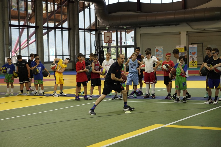 “Appena arrivati con la mia famiglia, ci siamo subito messi all’opera al Palaghiaccio di Folgaria, dove vi erano allestiti ben cinque campi da basket. Con più di 200 bambini che hanno assistito alla presentazione dei coach. Sinceramente non mi aspettavo di essere presentato in qualità di guest coach e ne sono rimasto molto sorpreso e contento”, rivela Andrea, che, pur sorpreso, si fa trovare preparato nel dirigere degli enormi gruppi di bambini, divisi tra lui e l’altro allenatore ospite, Giovanni Sferruzza, attraverso esercizi per affinare la tecnica e le capacità dei piccoli sognanti cestisti.