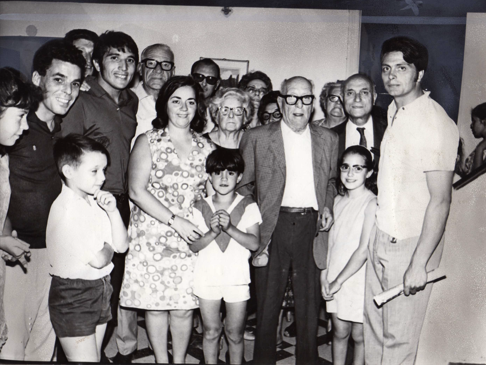 Con i nipoti sul divano di casa.