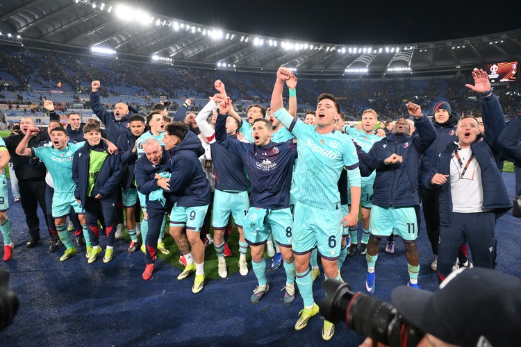 ROMA - Sette gol, spettacolo e bel calcio. Alla fine a far festa è il Bologna che espugna l’Olimpico e conquista i quarti di finale di Europa League, competizione che la Roma saluta a testa alta e con qualche rimpianto. I rossoblù, dopo l’1-1 del Dall’Ara, piegano i giallorossi ai supplementari per 4-3 nel derby di coppa al termine di un match dalle infinite emozioni. Ospiti avanti con Rowe (22’) e subito riacciuffati da N’Dicka (32’). Nel finale di frazione Bernardeschi dal dischetto riporta avanti gli ospiti e Castro firma il tris al 58’. A cambiare la partita è il 17enne Vaz, subentrato al posto di uno spento El Shaarawy, che conquista il rigore del 3-2, poi trasformato da Malen (69’), e serve a Pellegrini l’assist per il gol del 3-3 all’80’. Ai supplementari a deciderla è Cambiaghi (111’), che regala al Bologna i quarti di finale e spegne i sogni europei della Roma. Bernardeschi e compagni si giocheranno un posto in semifinale con l’Aston Villa di Emery, uscito vittorioso dal rispettivo ottavo con il Lille. La formazione di Gasperini saluta le coppe e ripartirà dalla sfida casalinga con il Lecce valida per la 30ª giornata di Serie A, l’ultima prima della sosta nazionali. Il Bologna ospiterà la Lazio.