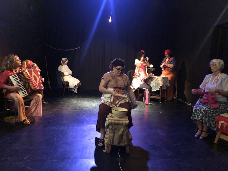 Ma il teatro deve essere prima di tutto una festa tra amici. Per questo, alla fine di ogni spettacolo (nella foto qui sopra, il saluto degli attori e di Leticia Lucioni, la terza da sinistra), gli spettatori sono invitati a restare, a cantare la canzone con cui si chiude l’opera (“Sora Menica” di Gabriella Ferri, artista dimenticata che avrebbe meritato più attenzione nel suo lavoro di recupero della canzone popolare) e approfittare di un piccolo aperitivo italiano, a base di Campari, focaccia e pizza.