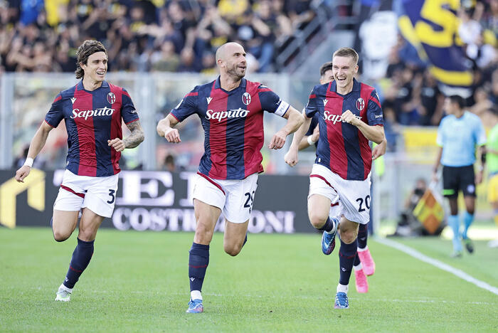 BOLOGNA (4-2-3-1): Skorupski 6; De Silvestri 7 (39' st Corazza sv), Beukema 5, Calafiori 6.5, Lykogiannis 5.5 (29' st Kristiansen 6); Freuler 6 (38' st El Azzouzi sv), Aebischer 5.5; Orsolini 6 (29' st Ndoye 6), Ferguson 7, Saelemakers 6.5 (38' st Moro sv); Zirkzee 6.5.