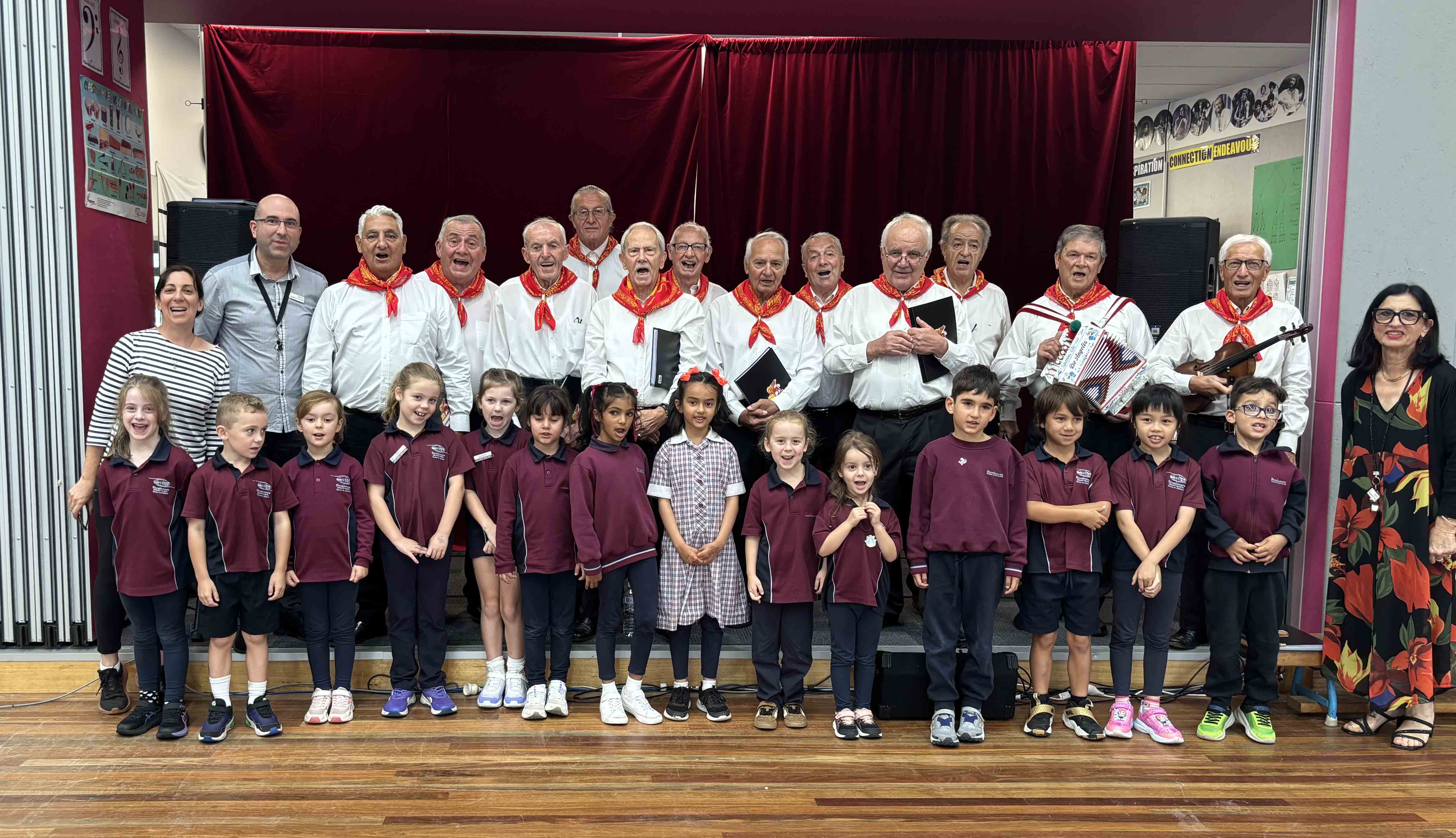 MELBOURNE – La musica come ponte tra culture e strumento privilegiato per apprendere una lingua e apprezzarne la cultura. È questo lo spirito che ha animato la giornata di giovedì 26 marzo alla Strathmore Primary School, dove, in occasione della Harmony Week, gli studenti hanno partecipato a un evento speciale organizzato dall’insegnante di italiano Angela Pane insieme al coro maschile del Veneto Club.