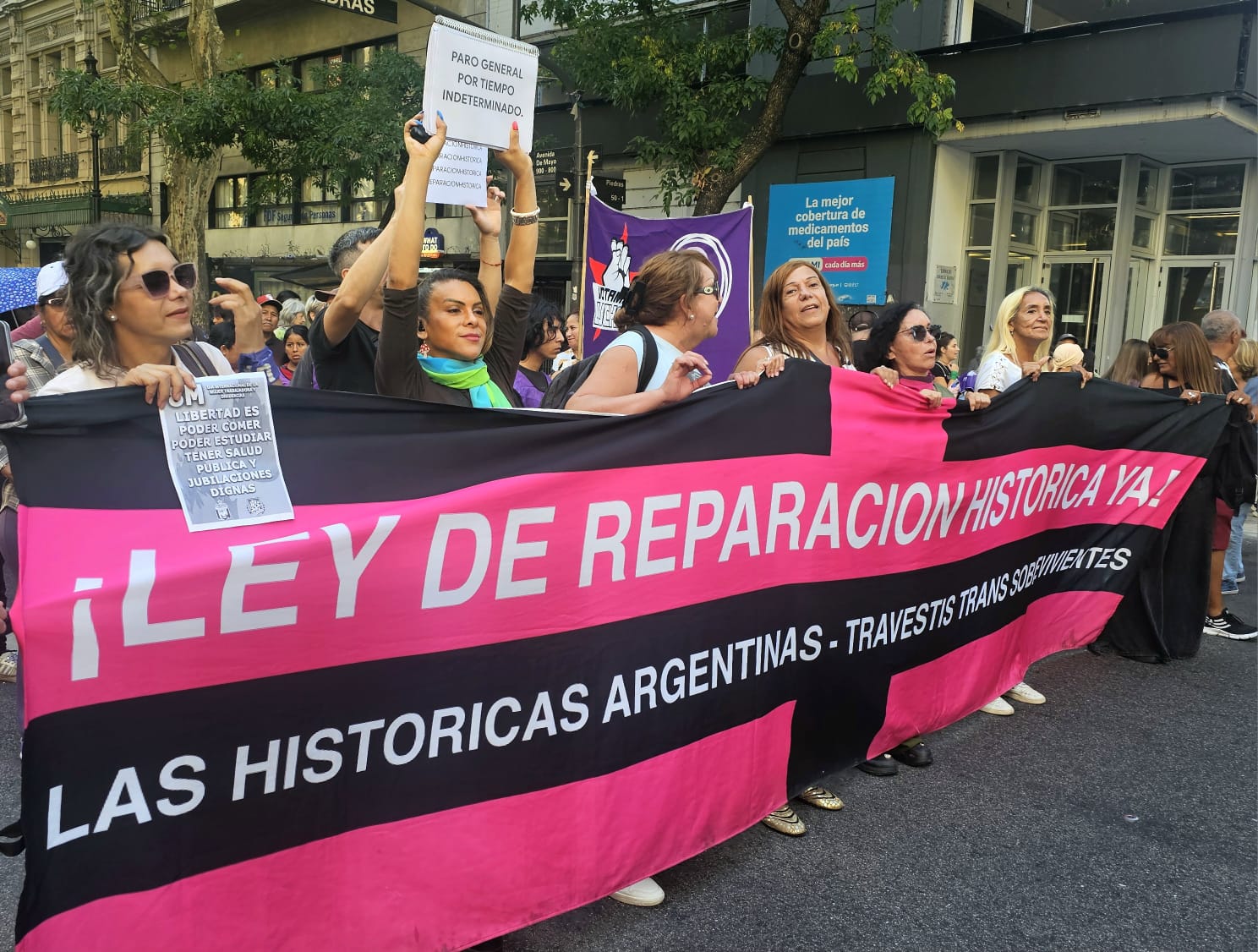 La marcia ha raccolto anche le rivendicazioni di diversi settori del movimento. Il collettivo travesti-trans si è fatto sentire con forza. “Signore e signora, non sia indifferente: le travesti vengono uccise sotto gli occhi della gente”, cantavano le attiviste di Históricas Argentinas mentre reggevano un cartello che chiedeva una legge di riparazione storica per il collettivo.