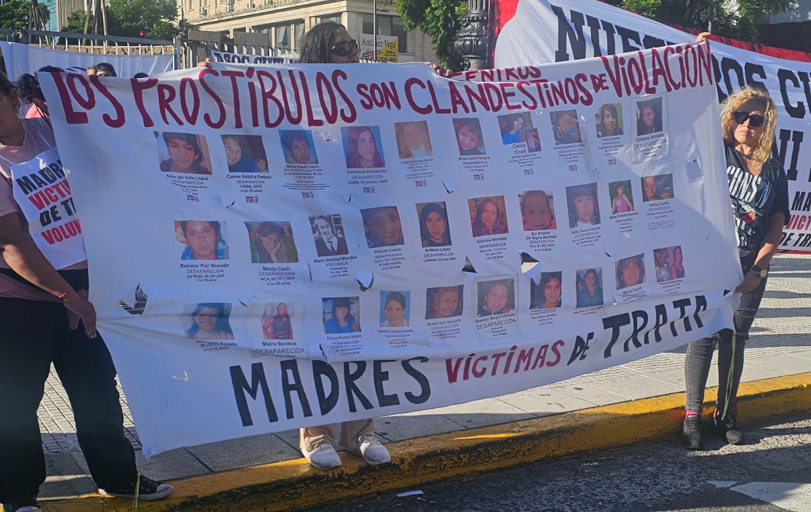 Nel corteo marciavano anche organizzazioni di familiari delle vittime della violenza sulle donne. Le Madri Vittime della Tratta di Persone hanno marciato con le loro bandiere e fotografie con i volti delle figlie, reclamando giustizia e denunciando la persistente presenza di reti di sfruttamento.