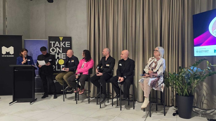 In collaborazione con City of Melbourne, Global Victoria, Kinaway Chamber of Commerce e RMIT University, e con Lamborghini Melbourne come partner principale, la serata all’Aerial è iniziata con un’interessante conversazione che ha visto coinvolti, dopo la presentazione della segretaria generale Veronica Misciattelli, alcuni protagonisti della scena dell’arte, del design, della creatività e dell’industria di Melbourne, Ian Wong, senior lecturer alla Monash University, Dan Treacy, responsabile del design di Rakumba Lighting, Denni Francisco, direttrice creativa e fondatrice di Ngali, Josh Deane, artista e designer del marchio By Josh Deane, Anthony Pecora, general manager - business development - beauty a Myer e Barry Moore, managing director de La Marzocco Australia.