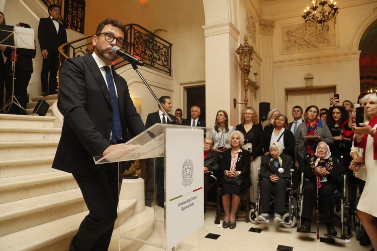 Le parole dell’ambasciatore Fabrizio Lucentini hanno accennato ai rapporti culturali ed economici che legano le nostre nazioni. “Italia e Argentina sono Paesi fratelli, non solo per la storia comune di emigrazione, le affinità culturali, la forte presenza economica italiana nel Paese, ma anche per la ferma adesione ai principi universali di libertà, pace e rispetto dei diritti” ha ricordato, affiancato da Estela Barnes de Carlotto e altre rappresentati delle Abuelas de Plaza de Mayo.