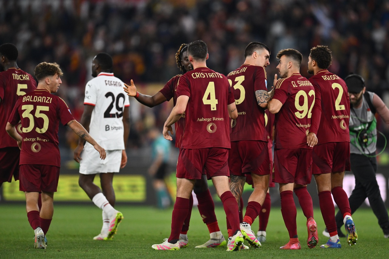 E se i rossoneri sembrano rimasti con la testa alla finale persa di Coppa Italia col Bologna, i giallorossi, con Dybala, Dovbyk e Pellegrini indisponibili, hanno voglia si sparigliare le carte. E, dopo 3’, ecco il vantaggio dei capitolini: Soulé rimedia e batte un corner giusto sulla testa di capitan Mancini, che insacca di testa.