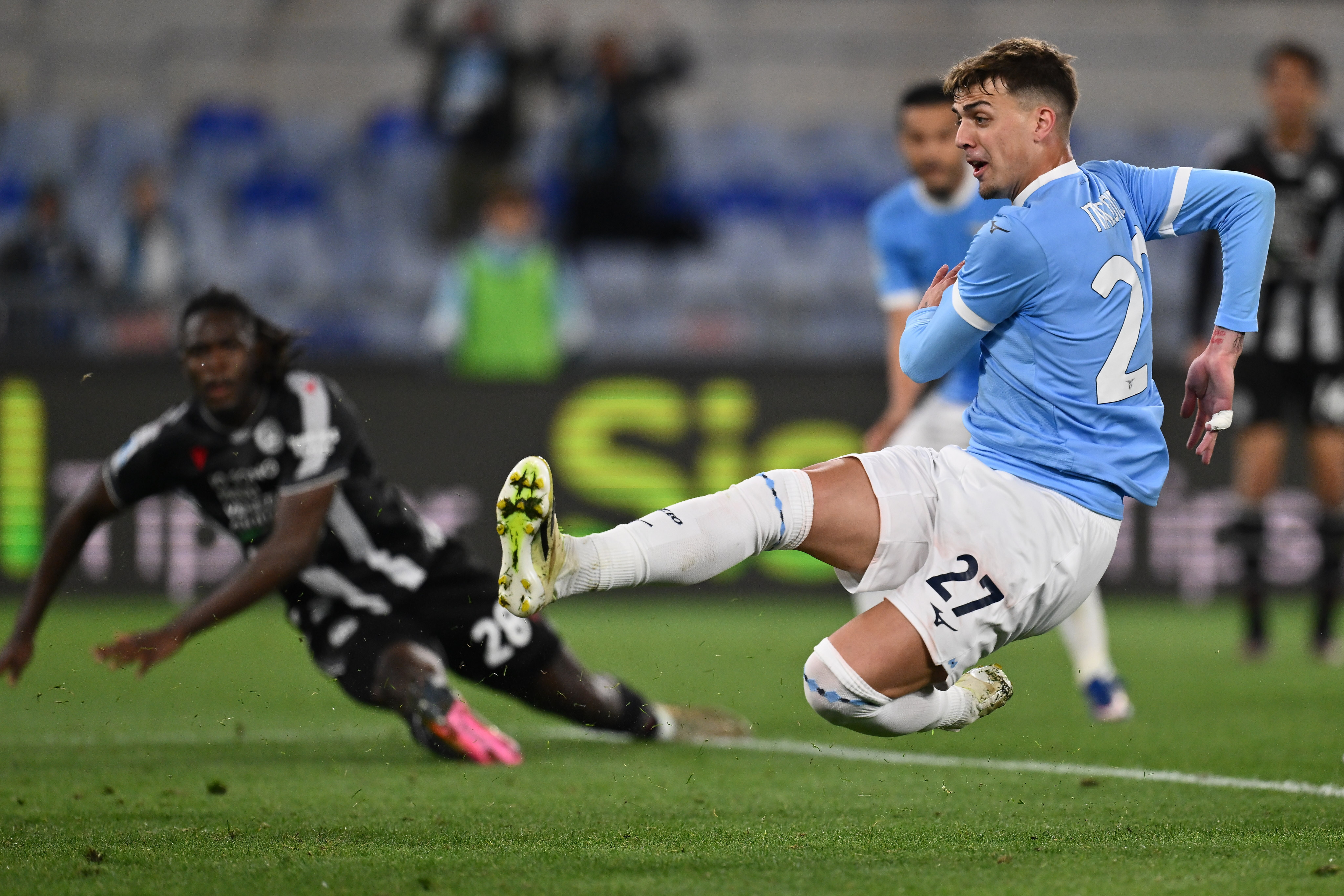 In apertura di secondo tempo la Lazio rimette tutto in equilibrio con le palle inattive. Dopo un calcio d’angolo battuto da Taylor il pallone carambola al limite dell’area e finisce nel raggio d’azione di Pellegrini, che con un grande sinistro in controbalzo batte Okoye per l’1-1 al 50’. Nonostante il gol del pareggio e gli ingressi di Pedro e Dele-Bashiru, i padroni di casa non riescono a fare e gioco e lasciano iniziativa all’Udinese. In ripartenza la Lazio sfiora il sorpasso: Isaksen scappa via sulla destra, salta Solet e calcia a giro trovando la risposta in spaccata di Okoye, che devia la conclusione del danese sulla traversa. All’80’ la squadra di Sarri mette la freccia: Basic si avventa su un pallone vagante e serve al limite dell’area Pedro, che con uno splendido destro a giro buca un incolpevole Okoye. Nel momento migliore della Lazio, l’Udinese ritorna in carreggiata: Solet svetta in area su cross di Zaniolo, Motta respinge e tap in di Atta che ribadisce in rete per il 2-2 all’86’. Allo scadere arriva la clamorosa contro rimonta degli ospiti: angolo di Zaniolo, pallone che finisce sui piedi di Atta, che calcia a giro dai 15 metri e batte per la terza volta Motta al 93’. All’Olimpico le emozioni non finiscono e l’11 di Sarri riacciuffa l’Udinese con il gol di Maldini al 96’.