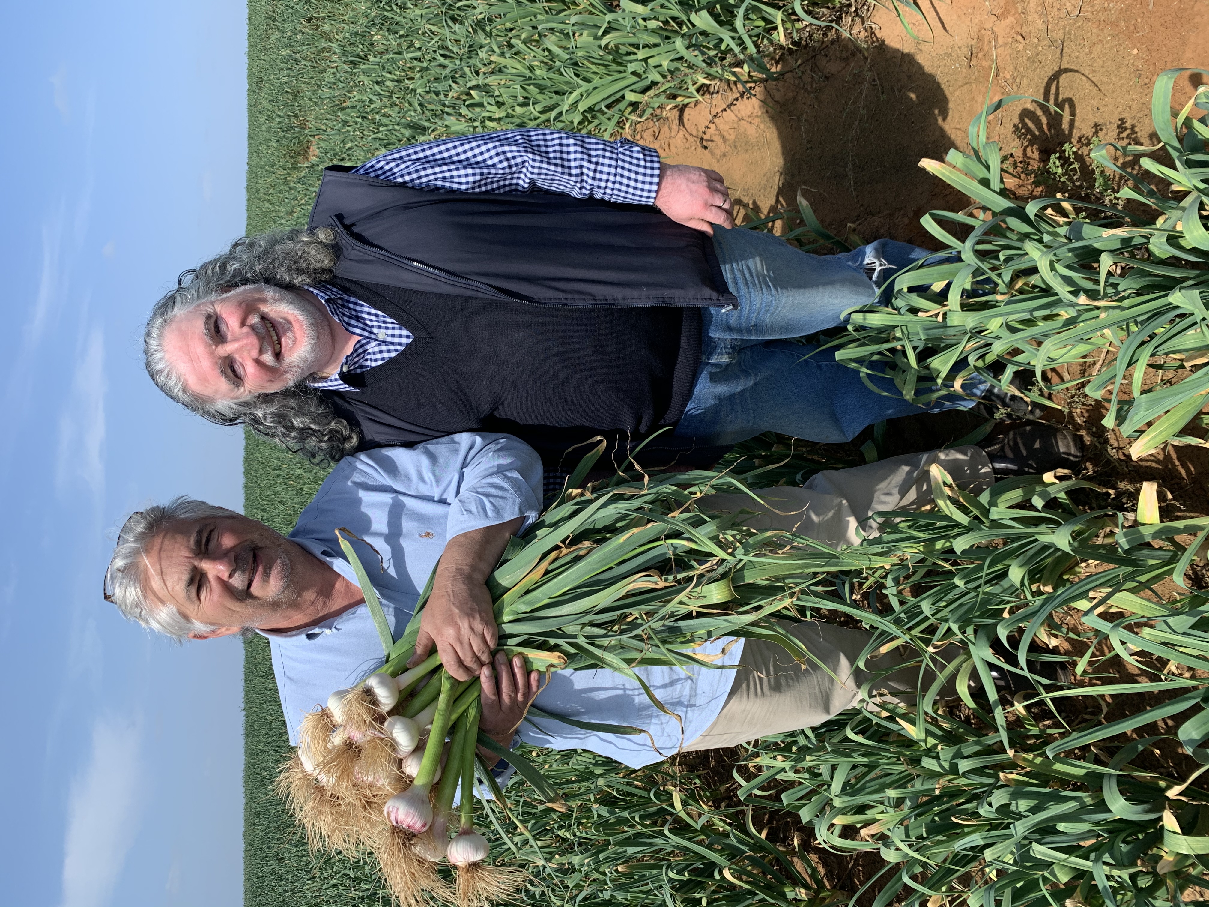 Stefano De Pieri insieme a Nick Diamantopoulos, responsabile della produzione dell’aglio che ha sostituito quello di origine cinese nei supermercati d’Australia