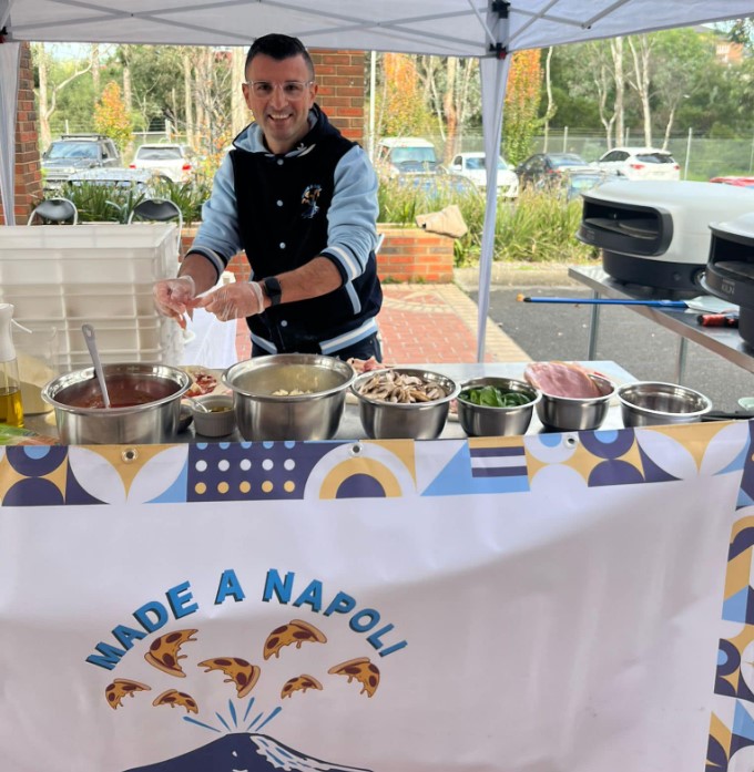 L’idea, però, di organizzare eventi e dar vita a una sua attività di catering è sempre rimasta nel cassetto fino a qualche anno fa quando, con intenso coraggio, ha deciso di dare forma al suo format ‘Made a Napoli’: “Che non è ‘Made in Naples’, perché volevo proprio sottolineare le mie origini”, precisa con un sorriso. De Giacomi ha quindi portato un autentico pezzo della sua terra nelle case e nei locali di Melbourne. Al suo fianco, anche sua moglie Flora Russo e i due figli, Roberto e Mario, con particolare passione da parte del primogenito che “fin da piccolo disegnava forni di carta e pale per la pizza”.