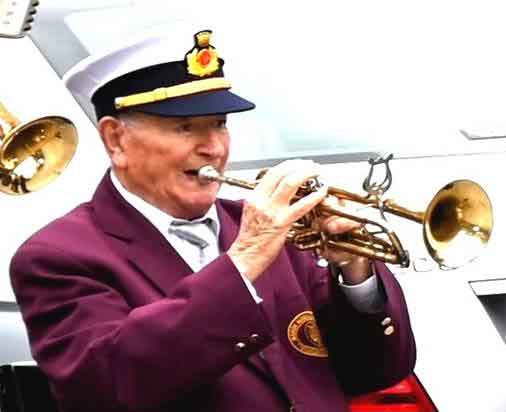 Aldo Falcone con la sua inseparabile tromba.