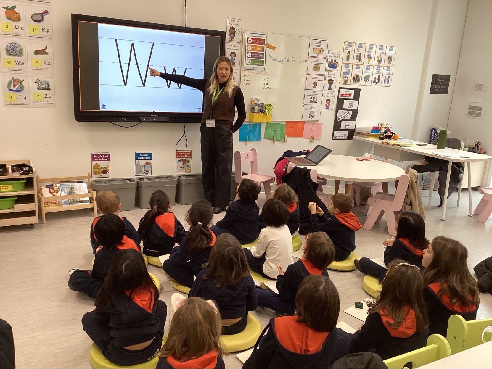 Annie Bell e i suoi piccoli studenti alle prese con l’inglese.