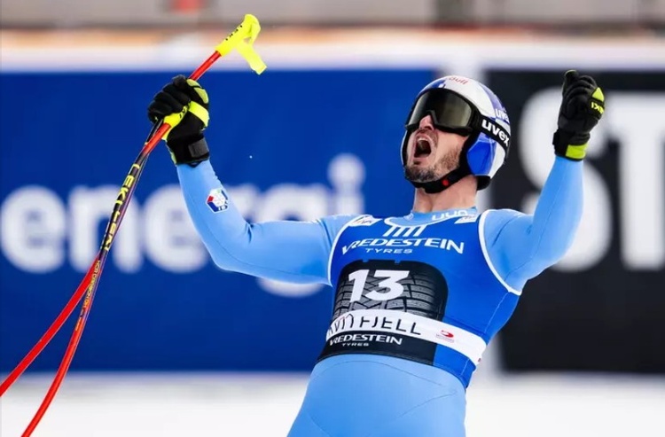 Successo numero 25, 20 in discesa e 5 in superG, in Coppa del Mondo per il fuoriclasse azzurro, che taglia il traguardo 1’45”37 precedendo di 0”19 lo svizzero Franjo Von Allmen e diventa il secondo italiano più vincente di sempre staccando Gustav Thoeni, terzo a quota 24.