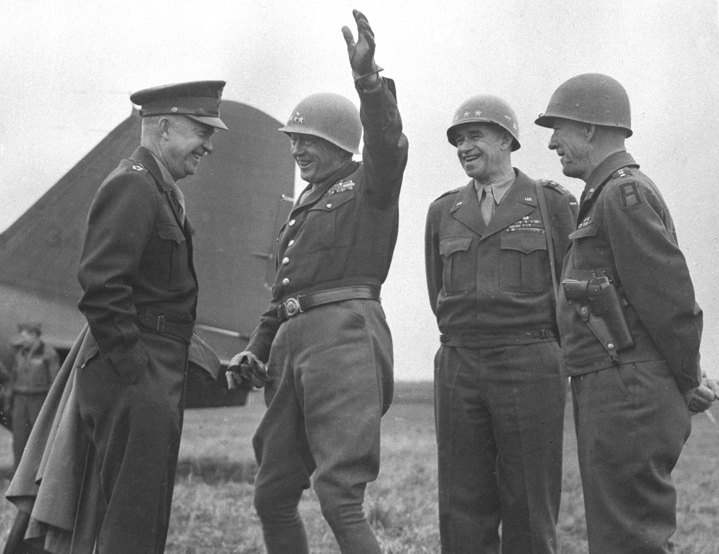 Il secondo gesto eclatante lo descrive così: “Giunti sulla riva opposta, feci finta di inciampare e caddi, raccogliendo un pugno di terra tedesca. Emulai così Scipione l’Africano e Guglielmo il Conquistatore, che inciamparono entrambi e trasformarono la caduta in uno scherzo dicendo: ‘Vedo nelle mie mani la terra africana’ oppure ‘la terra inglese’. Io vedevo tra le mie mani la terra tedesca”. La filosofia militare del “generale d’acciaio” che portava nella fondina una Colt 45 nichelata con il calcio in avorio con le sue iniziali, che i suoi uomini chiamavano “Old Blood and Guts” (vecchio sangue e fegato), era la seguente: “I pacifisti farebbero bene a esaminare le linee Maginot e Sigfrido, ricordando che esse furono forzate; che Troia cadde; che le mura di Adriano vennero abbattute; che la Grande Muraglia Cinese fu inutile; e che gli immensi mari che si suppone debbano difenderci possono essere anch’essi superati da un nemico audace e ingegnoso. In guerra l’unica difesa è l’offesa, e l’efficacia dell’offesa dipende dall’aggressività di coloro che la conducono”. Una frase che suona d’attualità anche nei conflitti del XXI secolo.