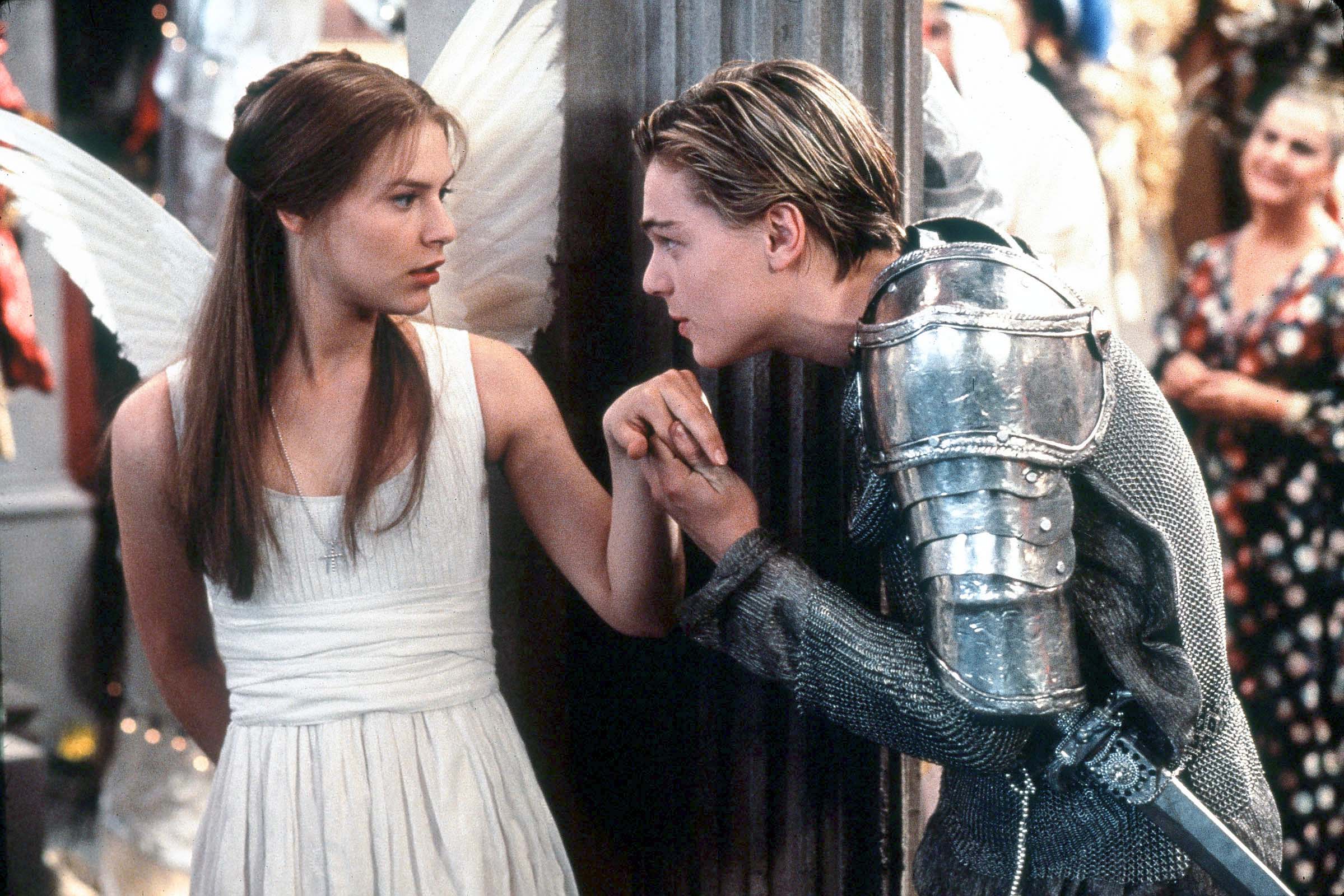 Al contrario, l’adattamento di Baz Luhrmann del 1996, Romeo + Giulietta, prende il dialogo originale e lo colloca in una città moderna e fittizia chiamata Verona Beach. I personaggi portano pistole al posto delle spade e l’ambientazione è piena di auto ostentate, luci al neon e violenza urbana. Leonardo DiCaprio e Claire Danes interpretano i giovani amanti.
