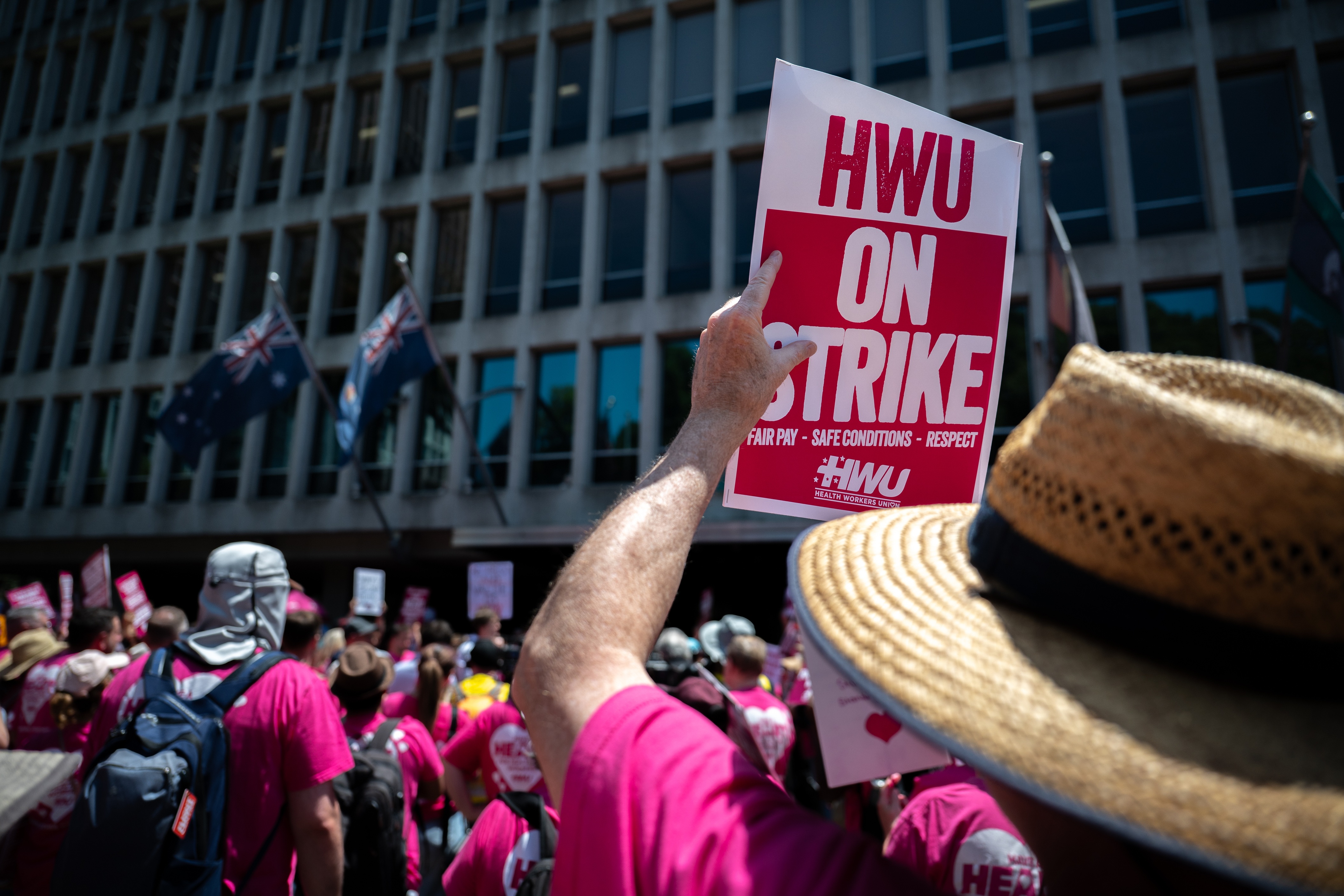 Oggi, le strade del centro sono rimaste paralizzate mentre una folla di iscritti all’Health Workers Union ha marciato dalla Victorian Trades Hall fino a Treasury Place, chiedendo una svolta immediata nella lunga vertenza salariale.