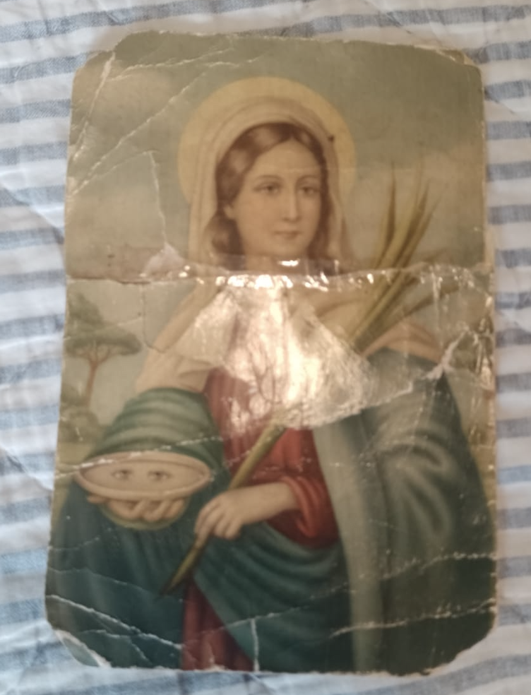 Il santino il cui retro era usato da Sergio come “quaderno”. (Foto: cortesia famiglia Malusà).