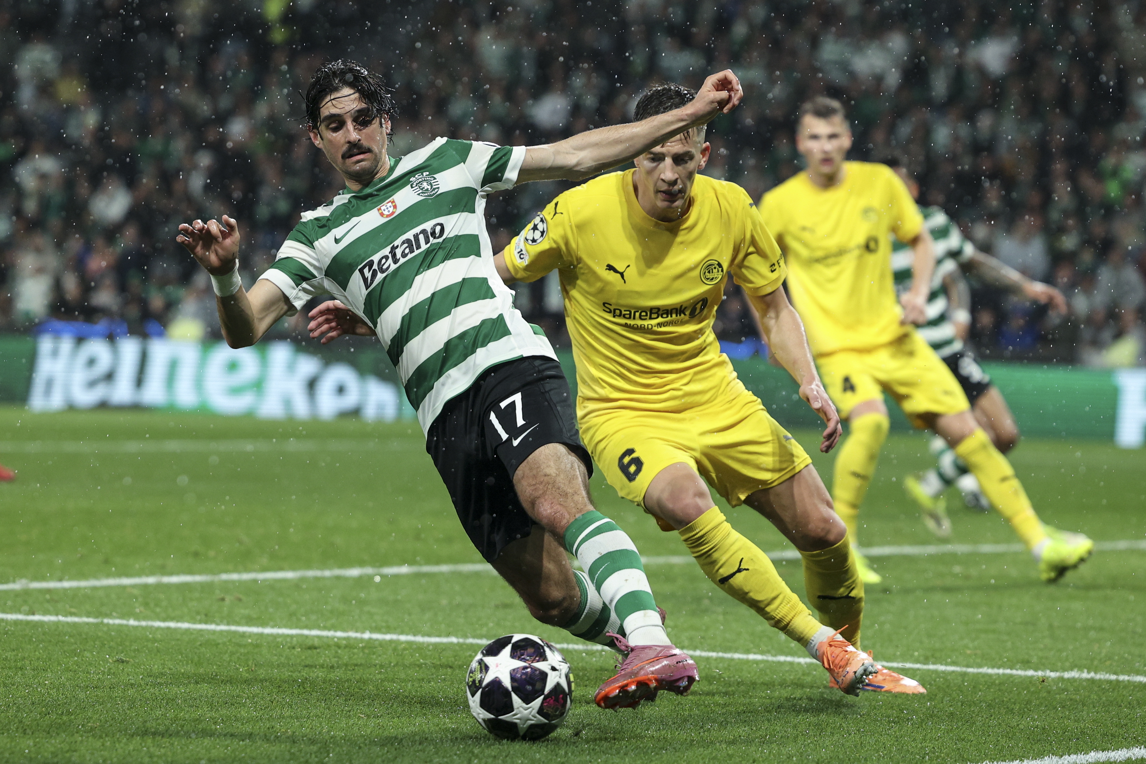 Il Bodo fatica ad uscire dalla propria metà campo anche nella ripresa, subendo la pressione asfissiante dei lusitani. Oltre al cuore, lo Sporting ci mette anche tanta qualità, riuscendo incredibilmente a riaprire il discorso qualificazione sotto il diluvio. Il secondo schiaffo al match è di Goncalves, che segna in contropiede al 61’. Al 77’ poi arriva l’episodio che rimette i portoghesi in piena corsa qualificazione. Con l’ausilio del Var, Scharer assegna il rigore, a seguito del mani di Bjorkan su cross di Fresneda. Dal dischetto Suarez è glaciale e realizza il 3-0. Le ripetute parate di Haikin e il palo di Santos impediscono allo Sporting di chiudere il discorso nei regolamentari.