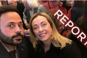 Tony Pietropiccolo (sinistra) insieme al sindaco di Ortona, Angelo Di Nardo, davanti alla casa popolare dove ha vissuto da bambino