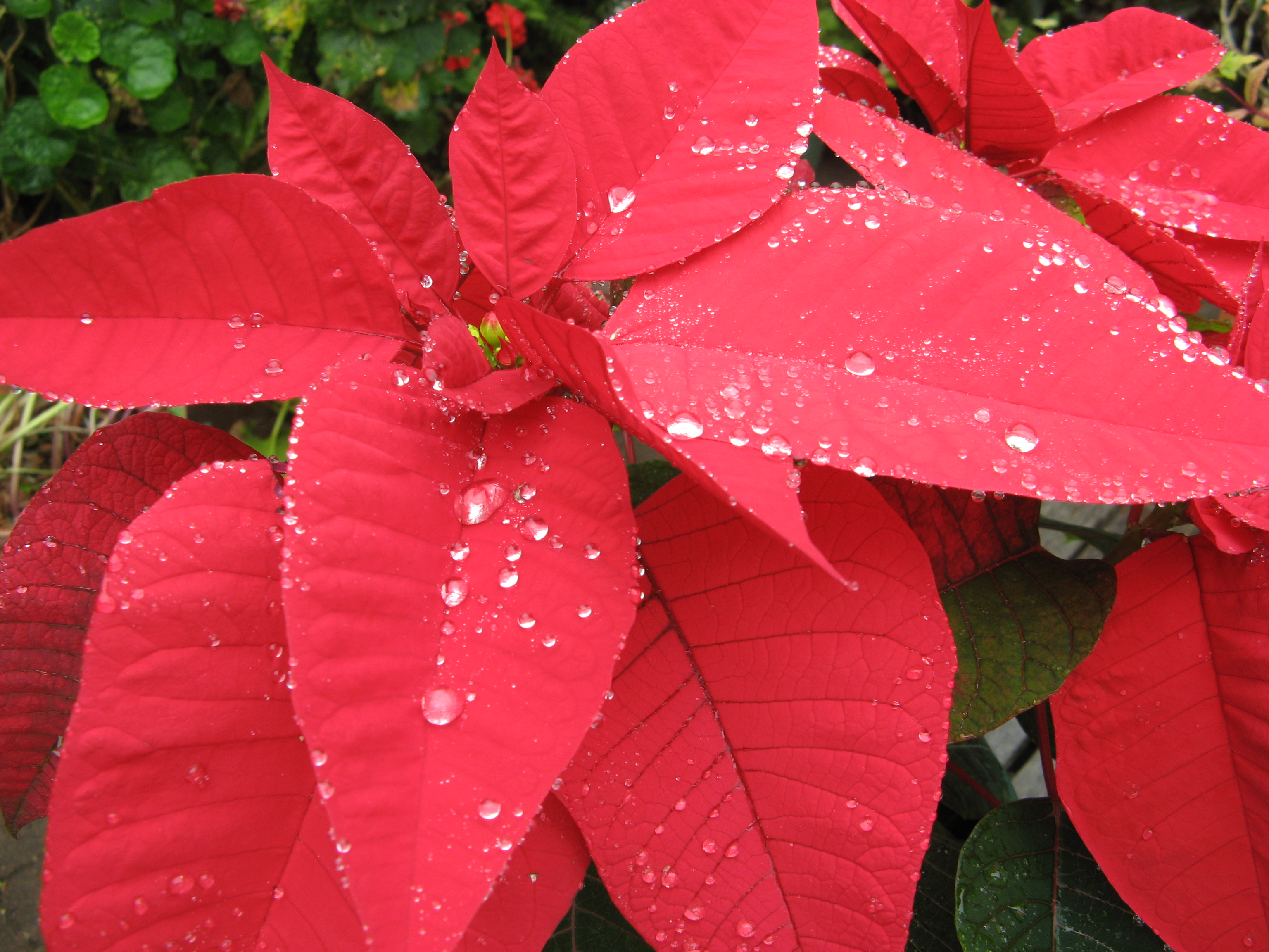 Quelli che consideriamo i grandi petali rossi sono in realtà brattee, cioè foglie trasformate. I fiori della poinsettia sono quelli piccoli verdi o gialli al centro.